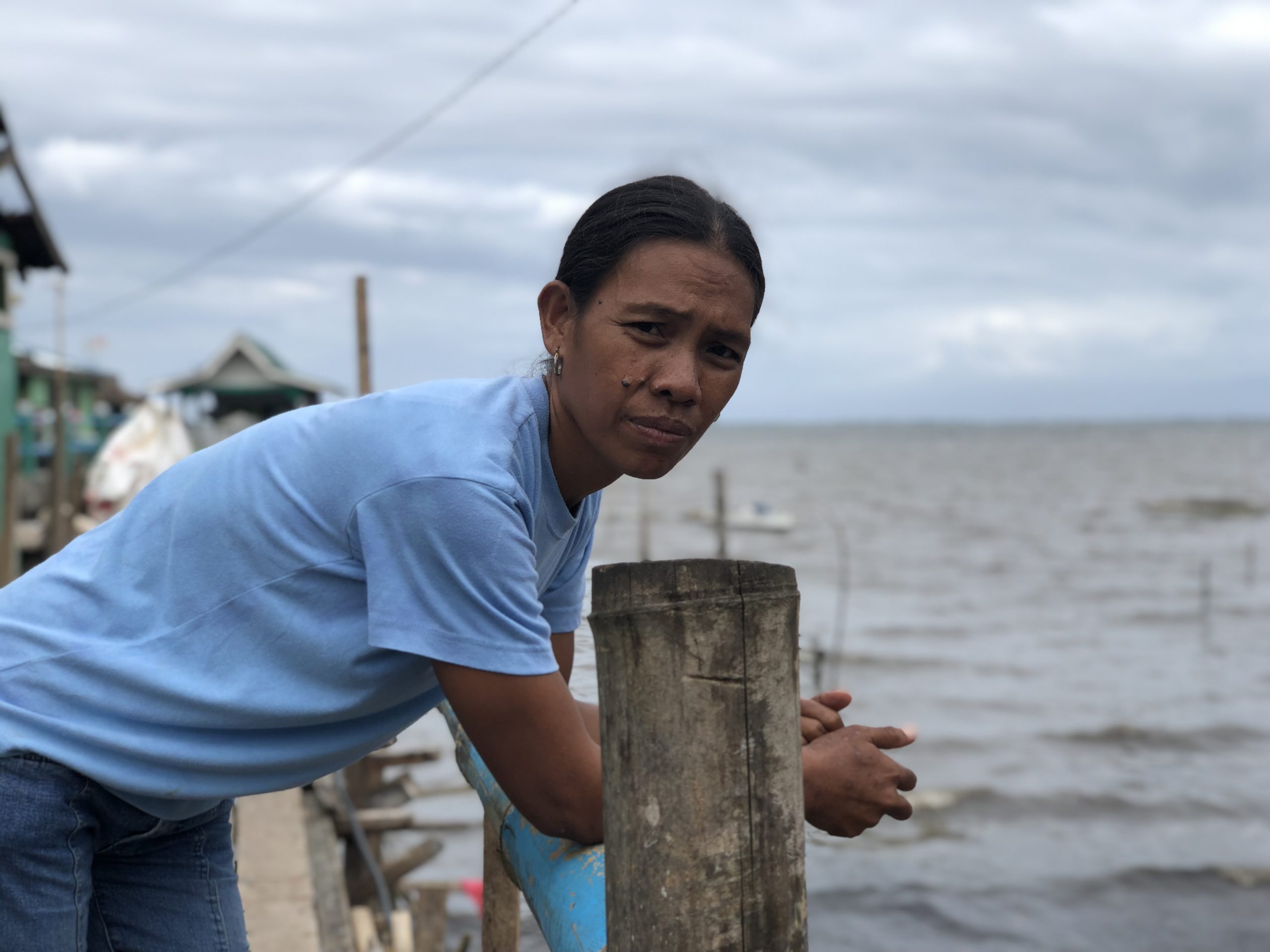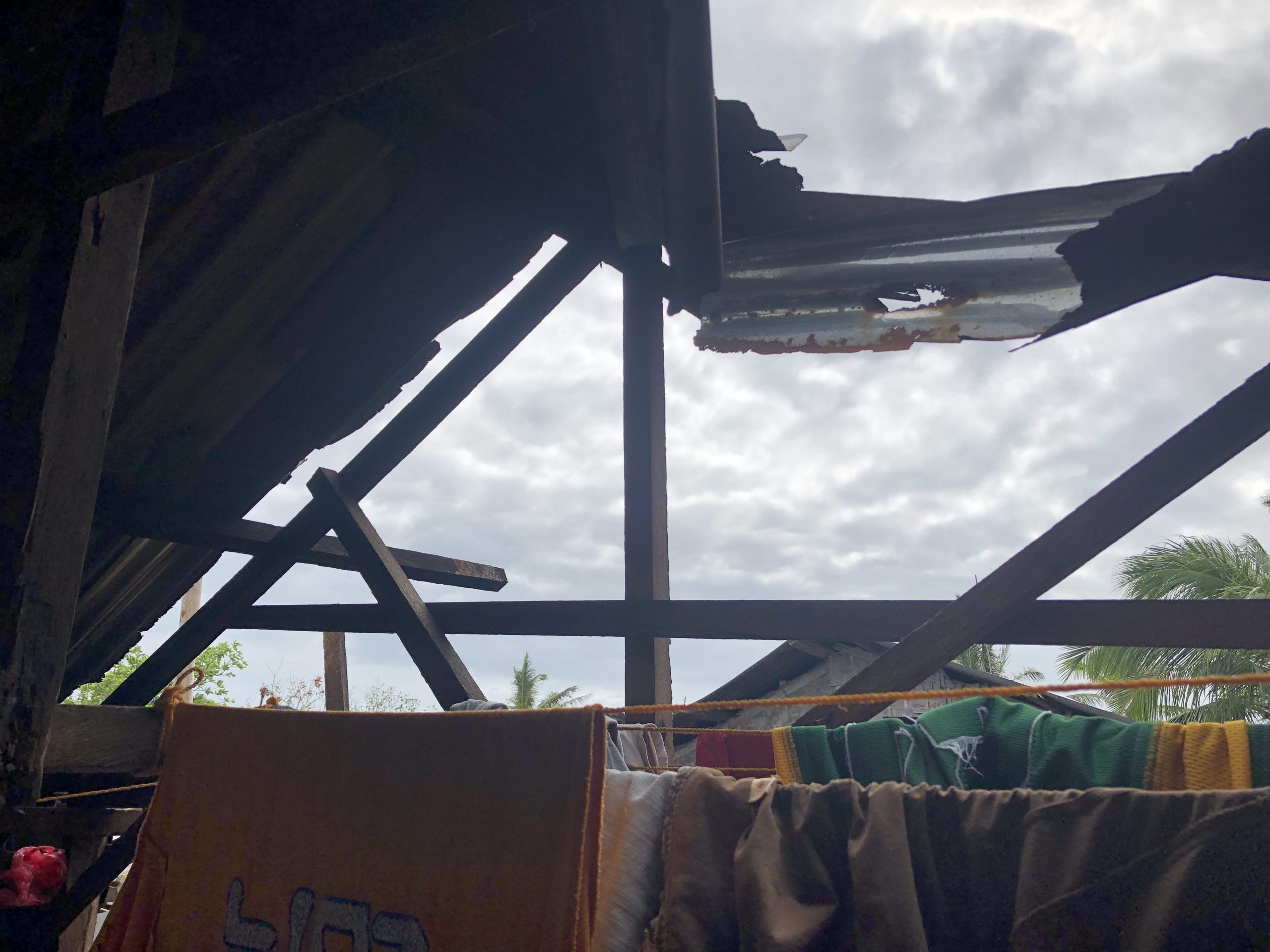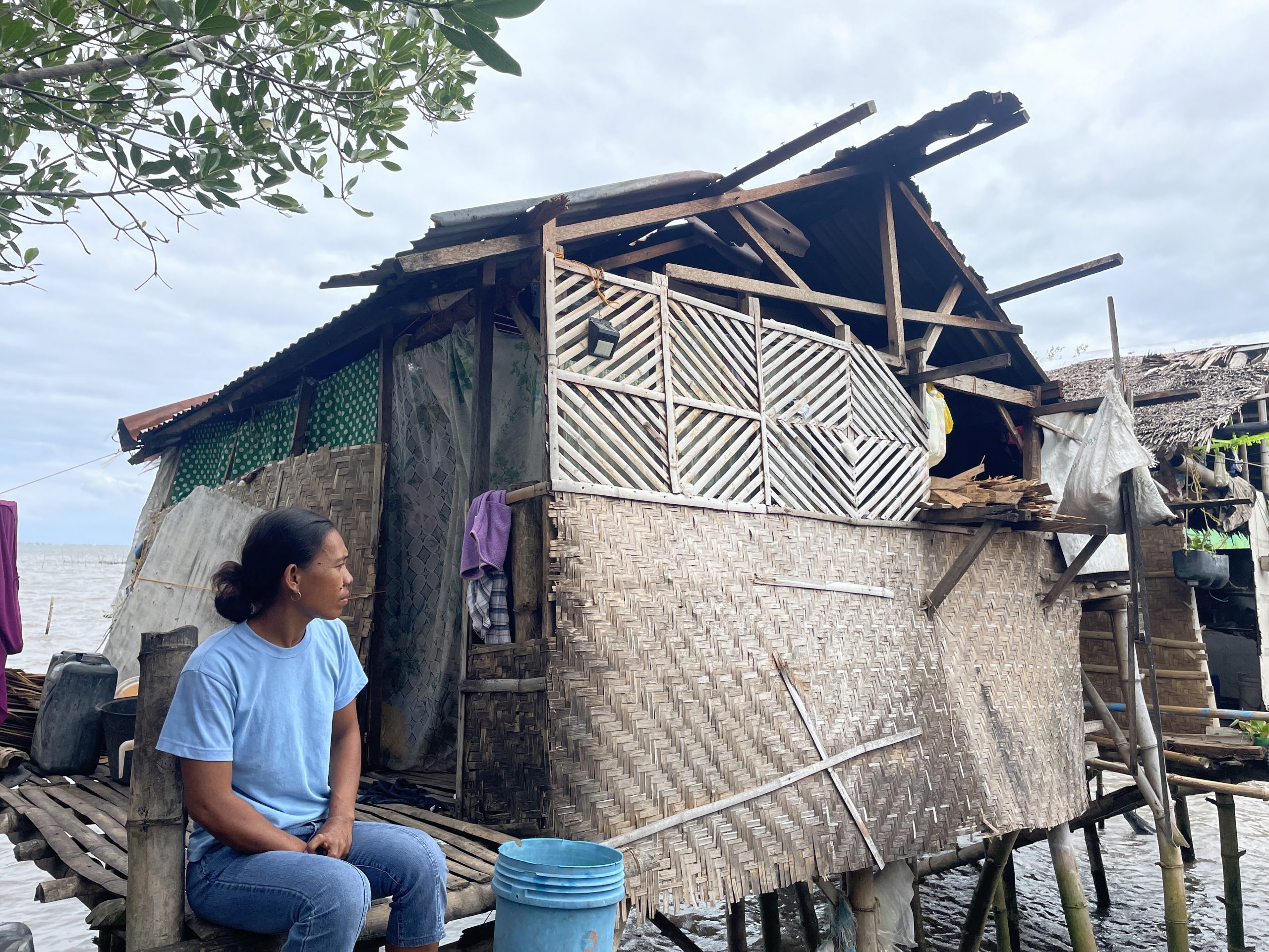 We first heard the howling wind blowing off our roof at around 9:00 in the evening. Since we live in a nipa hut over the water, we could feel the whole house shaking. My husband tried to tie up our home to keep it from breaking down. The seawater eventually entered our house and left holes in our bamboo floor.